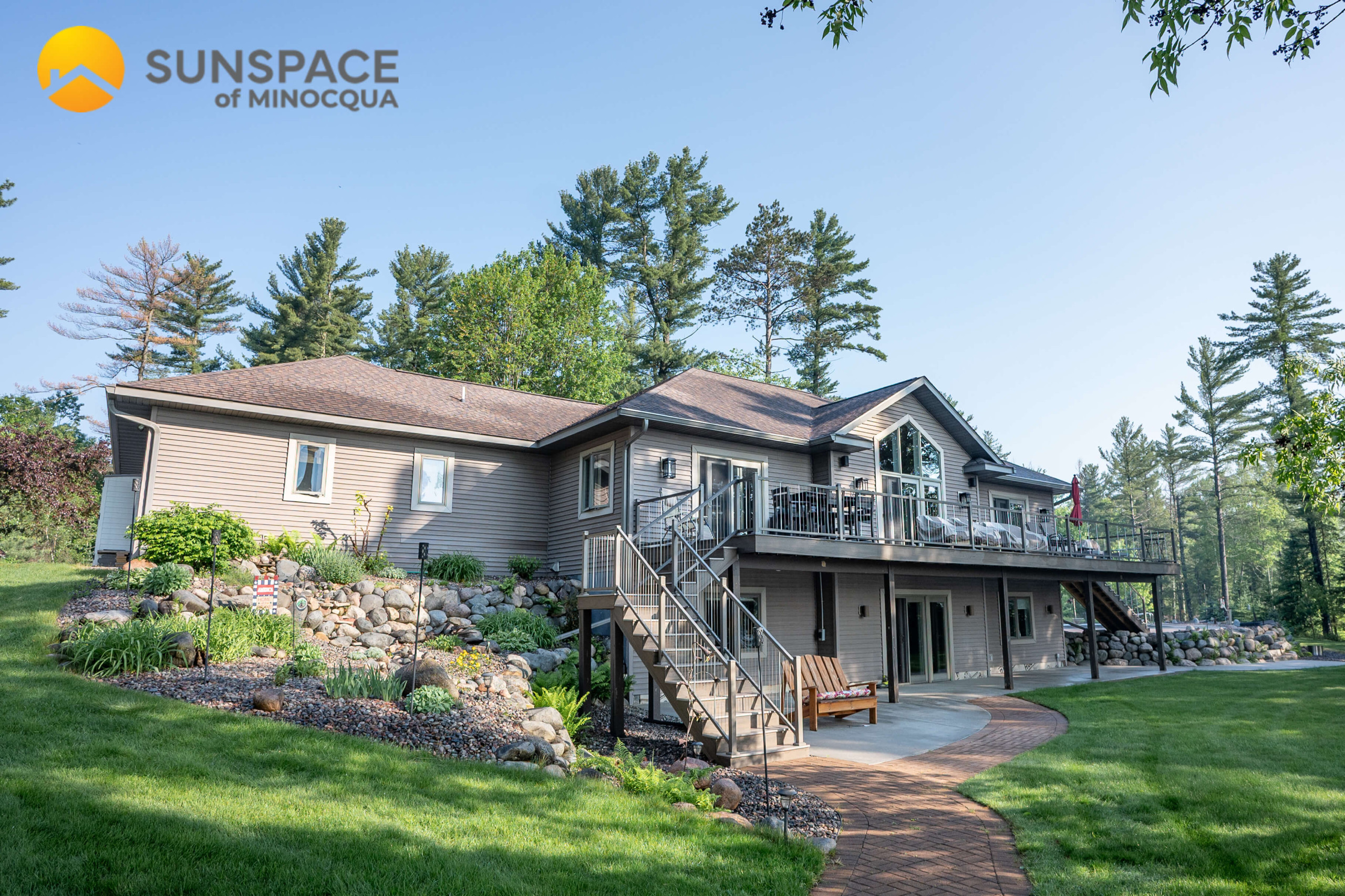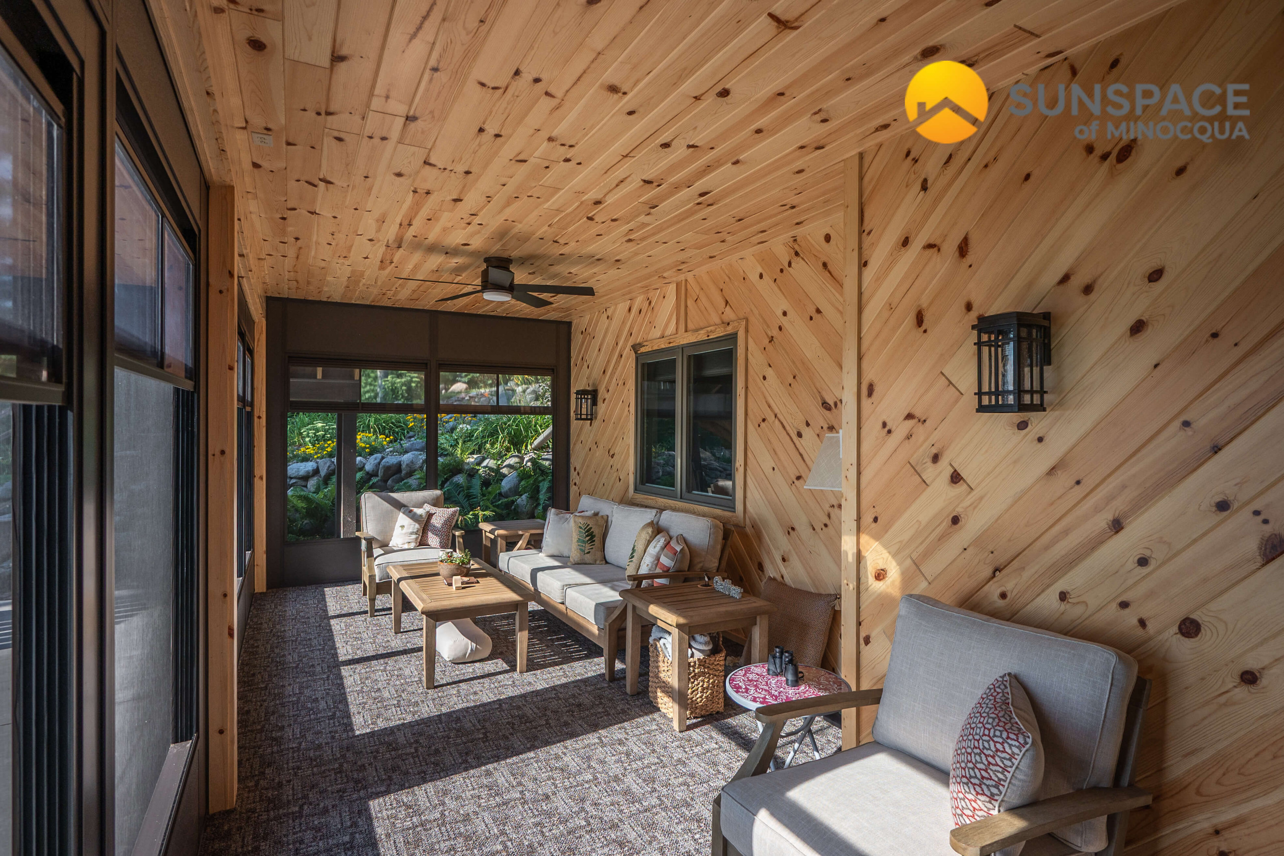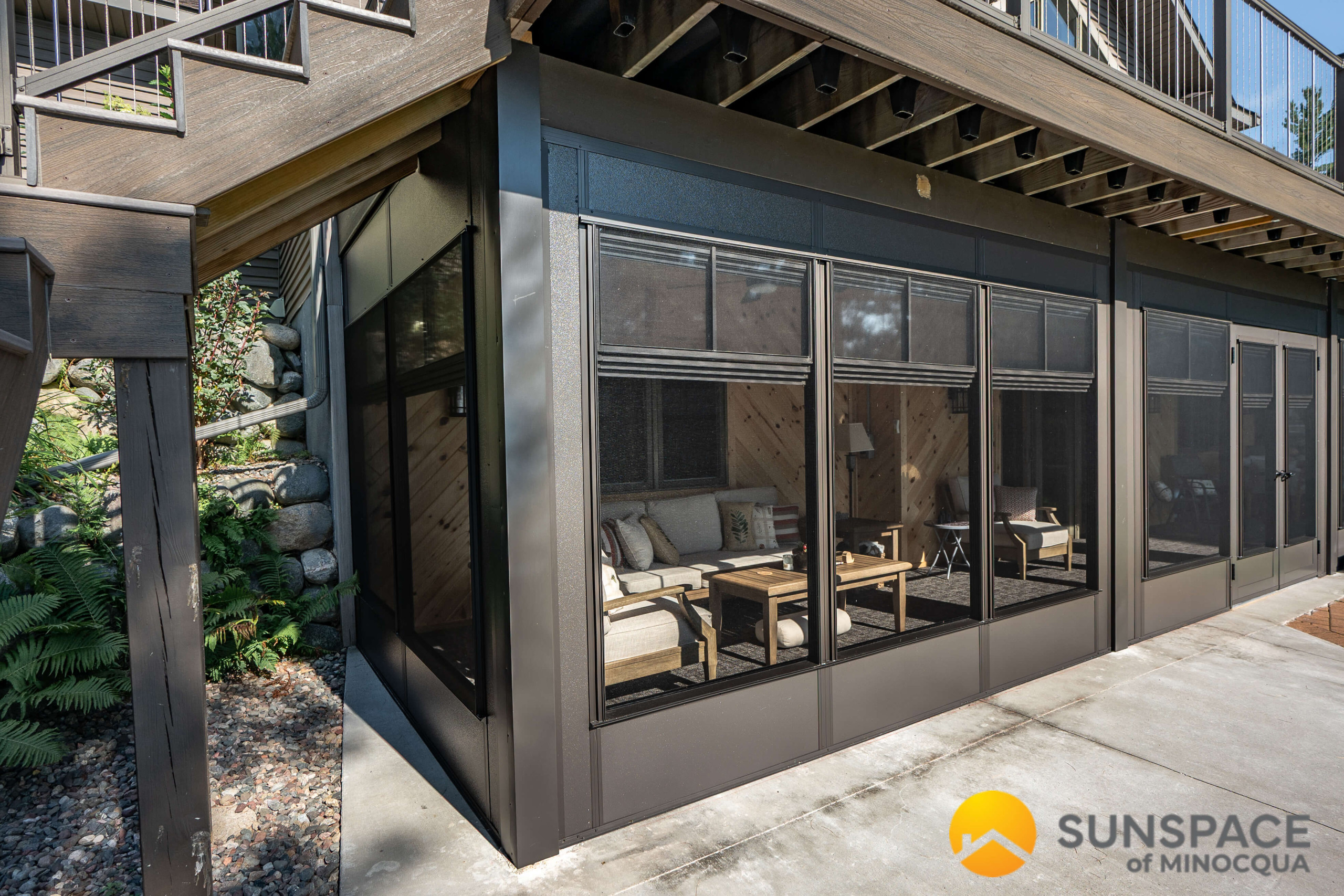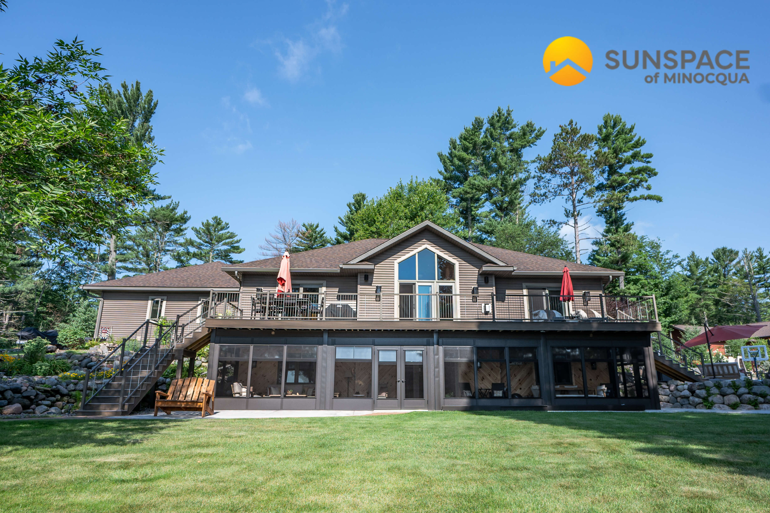 Sunspace of Minocqua recently completed a Walls Under Existing Roof project for a family in Tomahawk, Wisconsin. Like many Northern Wisconsin homeowners, they loved their lakefront property but found it hard to enjoy the lower patio. Mosquitoes, wind, and unpredictable weather meant the space sat unused for most of the year. They wanted a practical solution that would let them relax outdoors and feel connected to nature.